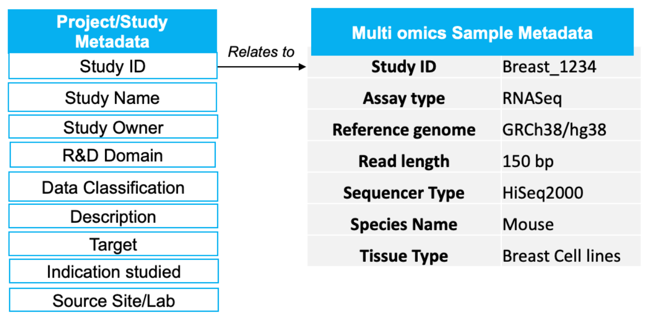 For example, the data storage systems and processing pipelines that capture information from genomic sequencing instruments are very different from those that capture the clinical characteristics of a patient from a site. Also, the associated business metadata for omics, which make it findable for later use, are dynamic and complex and need to be captured separately. Additionally, the fact that they need to be standardized makes the data discovery effort challenging for downstream analysis. A sample representation of the business or functional metadata for omics type called RNA-seq is provided in Figure 1 below.