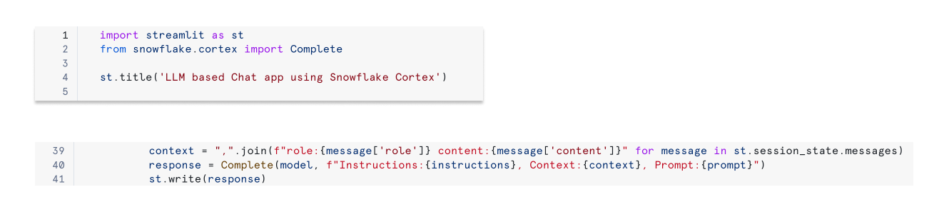 Streamlit provides chat elements that can be used to build conversational apps. Combined with Snowflake Cortex AI, customers can build chat-based applications that utilize industry leading models, such as Snowflake Arctic, Llama3, Mixtral 8x7b and others. Using the models hosted in Cortex AI inside a Streamlit app is as simple as importing a Python library and making a function call.