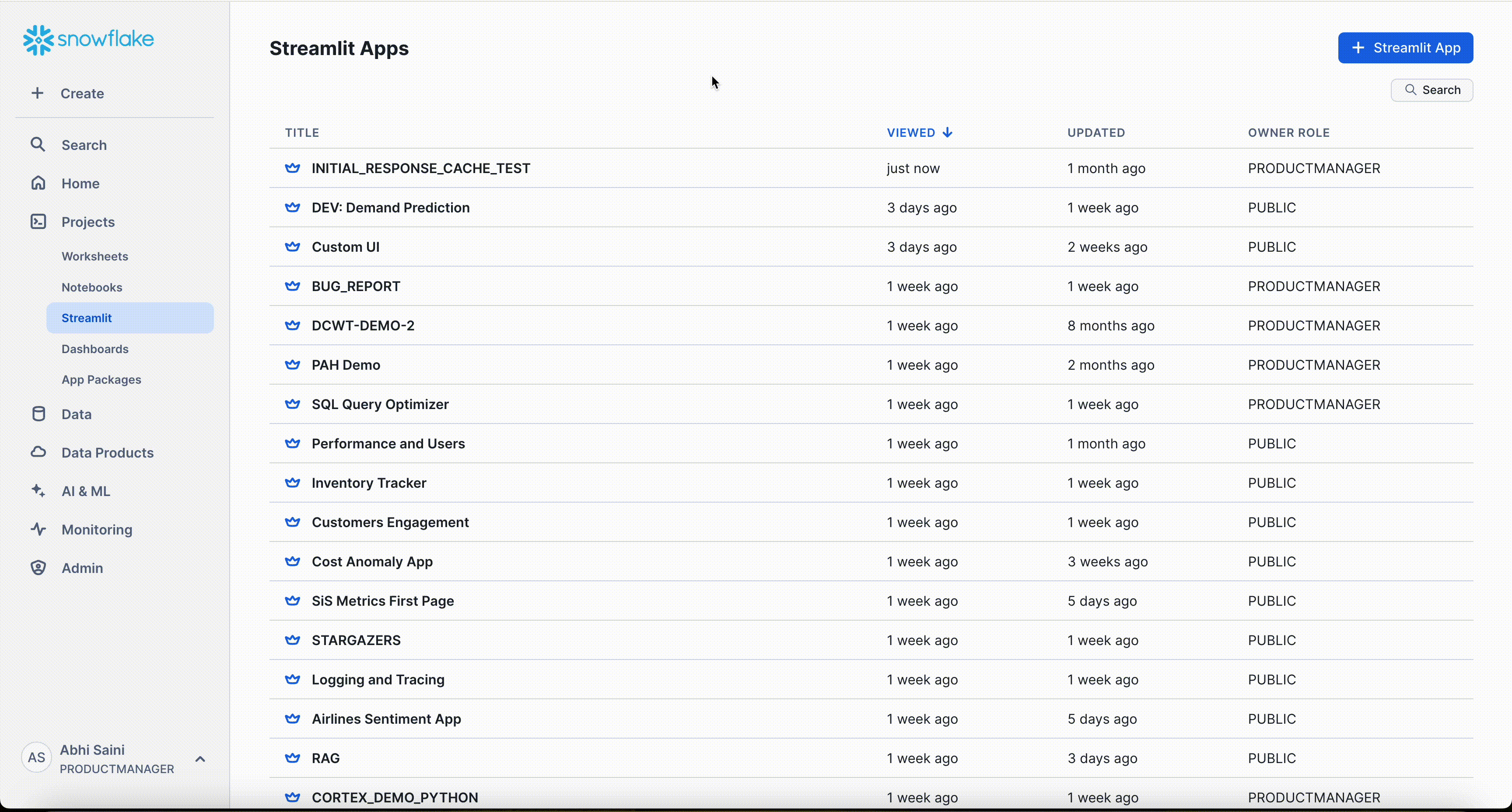 Snowflake’s mission is to mobilize the entire world’s data, and there are millions of data scientists and developers who don’t have access to full-stack engineering teams. It’s been our endeavor to bring the power of the AI Data Cloud to every individual developer, data scientist and machine learning engineer, so that they can build and share world-class data apps — all by themselves. Streamlit is an open source library that turns Python scripts into shareable web apps. No frontend experience is needed, and apps are written in pure Python. Over the past couple of years, Streamlit has become the standard for Python-based data app development and, with Streamlit in Snowflake, users can build an app in minutes.