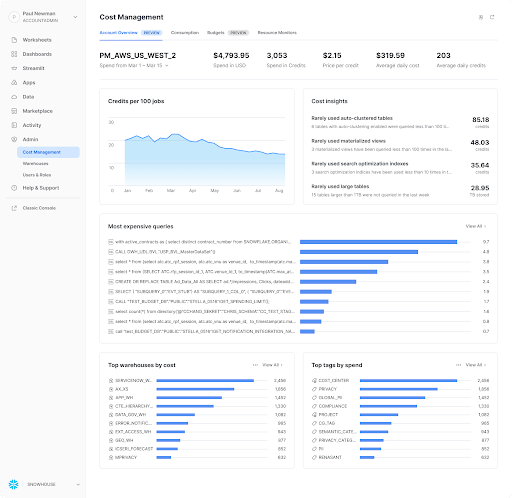 Verwalten und optimieren Sie Ihre Ausgaben für Snowflake mit dem neuen Cost Management Interface