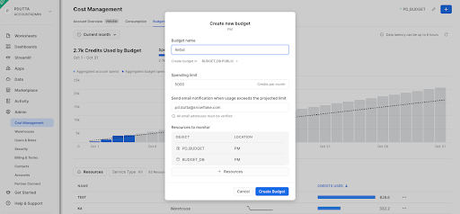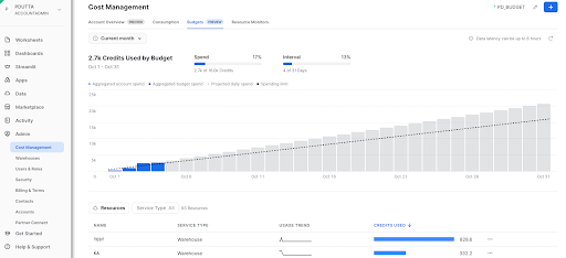 Snowflake möchte auch mit der Einführung von Budgets in Public Preview auf AWS das Kostenmanagement verbessern. Sowohl Budgets als auch Resource Monitors sind über das Cost Management Interface verfügbar. So können Administrator:innen die Ausgaben für Snowflake an einem Ort nahtlos überwachen.