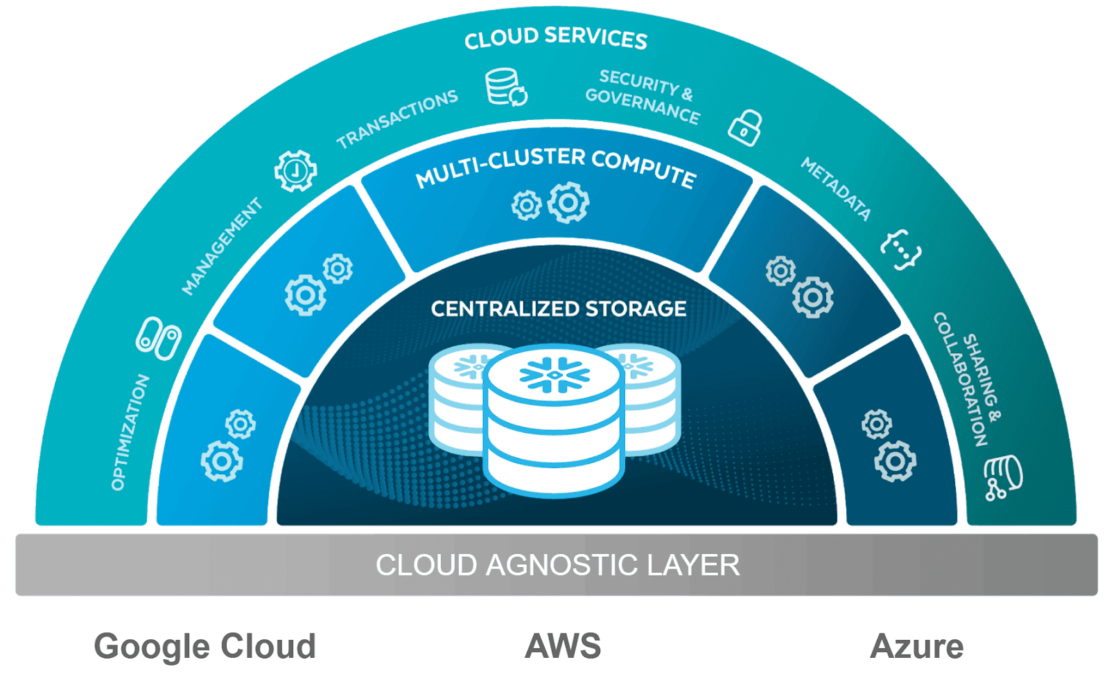 When we talk about the multi-cluster compute layer of Snowflake, we’re referring to the virtual warehouses that execute queries on the centralized storage layer. Below is the architectural diagram that shows the 3 components of the Snowflake platform.