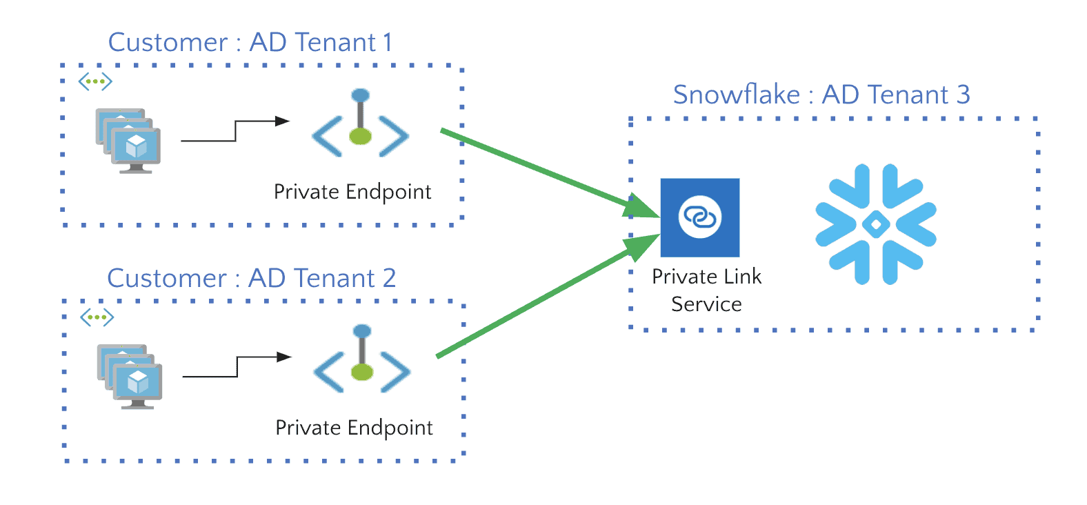 You can connect to Snowflake from VNets that belong to different Azure AD tenants by iterating over the setup process for each of your Azure AD tenant VNets.