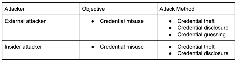 An attacker who steals or guesses a credential is likely to misuse it. The goal of this post is to make the methods used to obtain and misuse credentials practically impossible or very costly.