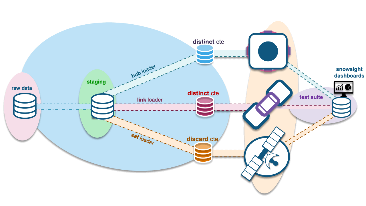 Not only can streams be used on ingestion data pipelines, they can also be used on the target tables to efficiently process data vault metrics into a test framework. We introduced this framework in post 2 of this series.. Where can we use it?