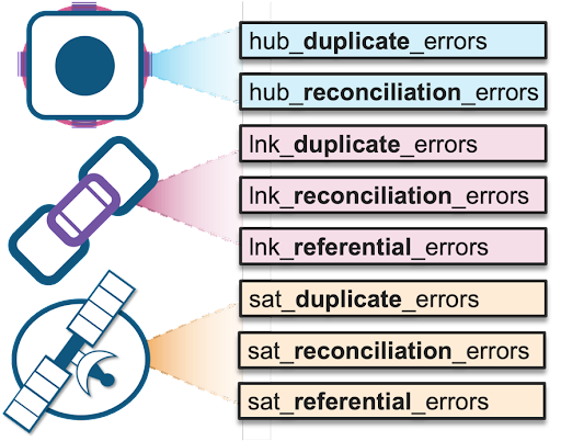 - Reconcile new hash keys with a satellite table’s parent entity, either a parent hub table or a parent link table