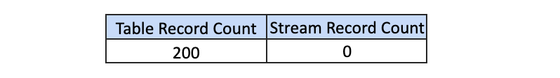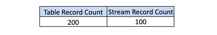 If we add another 50 records to the table, the read on the table will show 200 records and the stream will show 100 records: