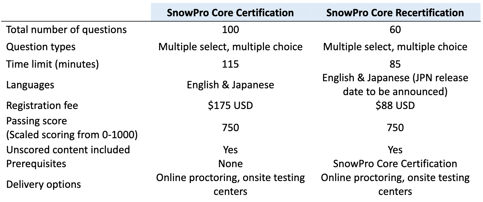 The SnowPro Core Certification demonstrates an individual’s knowledge to apply core expertise implementing and migrating to Snowflake. This certification validates a candidate’s understanding of Snowflake and how it can be used to drive business objectives. The SnowPro Core Certification has been generally available to all customers since September 2019. Snowflake continues to evolve as new features and functionalities are routinely developed. These types of innovations and best practices will be reflected in the updated English version of the exam to be released on September 6, 2022 (the Japanese version will be updated shortly thereafter).