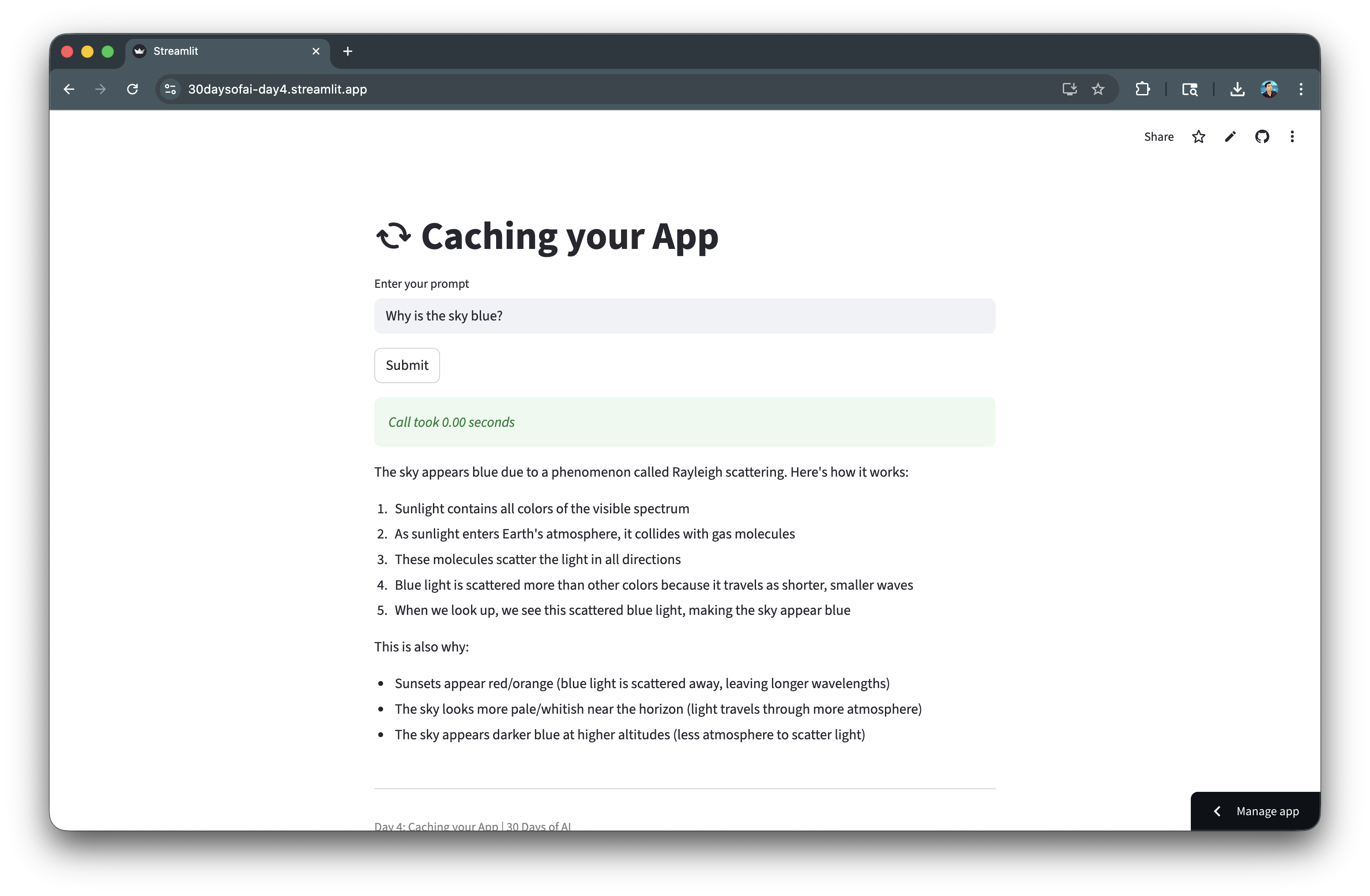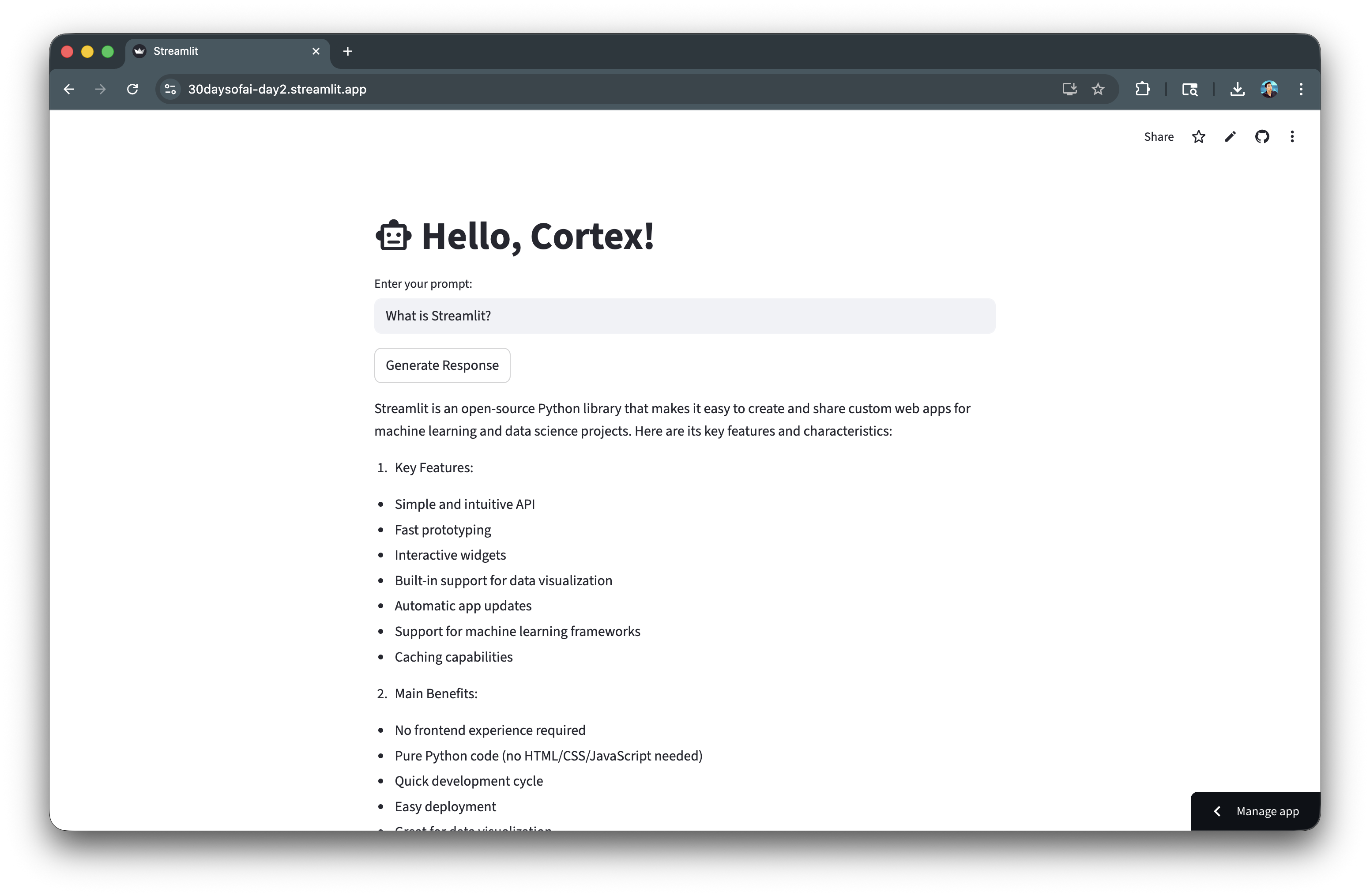 git clone https://github.com/streamlit/30DaysOfAI.git cd 30DaysOfAI/app