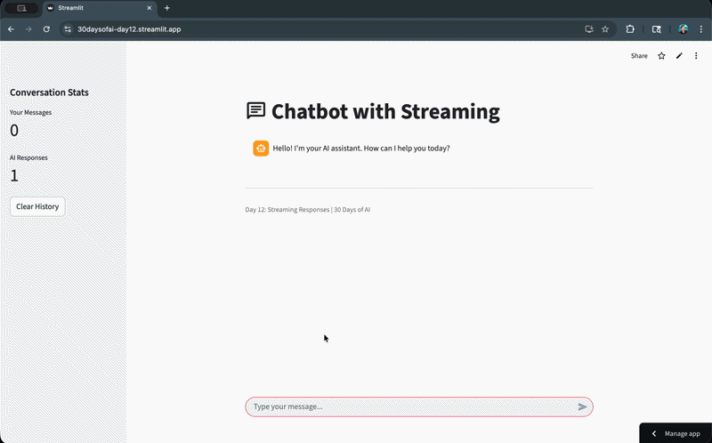 - Adding streaming responses for better UX (Day 12)