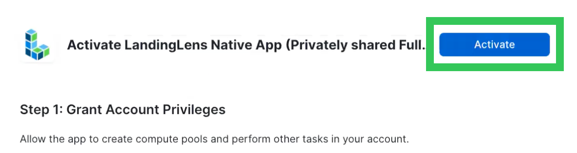 In Step 1, click Grant. These permissions allow LandingLens to create compute pools and perform other tasks in your account.