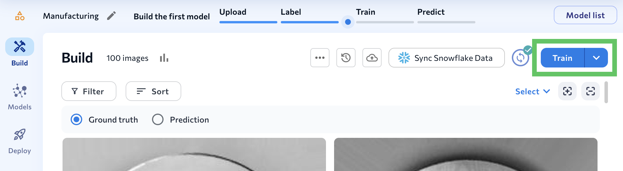 Now that all of the images are in the LandingLens project and have classes assigned to them, train a computer vision model. When you train a model, you give the labeled images to a deep learning algorithm. This allows the algorithm to "learn" what to look for in images.