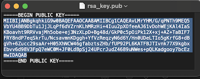 Open file rsa_key.pub with a simple text editor and be prepared to copy your key soon in step 3.e, which is everything in-between the "- - - -" lines. If 'openssl' command is not found, you need to review your Java installation before proceeding.