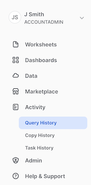Can also leverage Query History, a more account-wide administrative view, from the left side menu, click Activity>Query History: