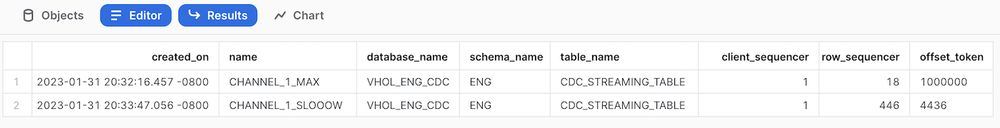show channels in table ENG.CDC_STREAMING_TABLE;