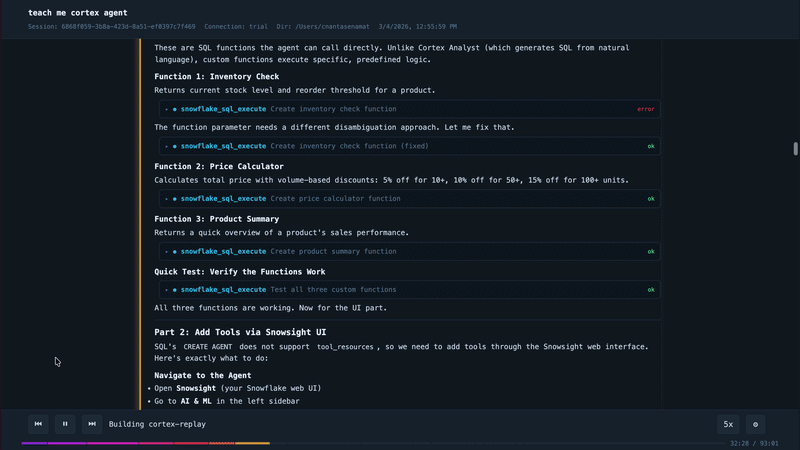Create Shareable Cortex Code Session Replays with cortex-replay