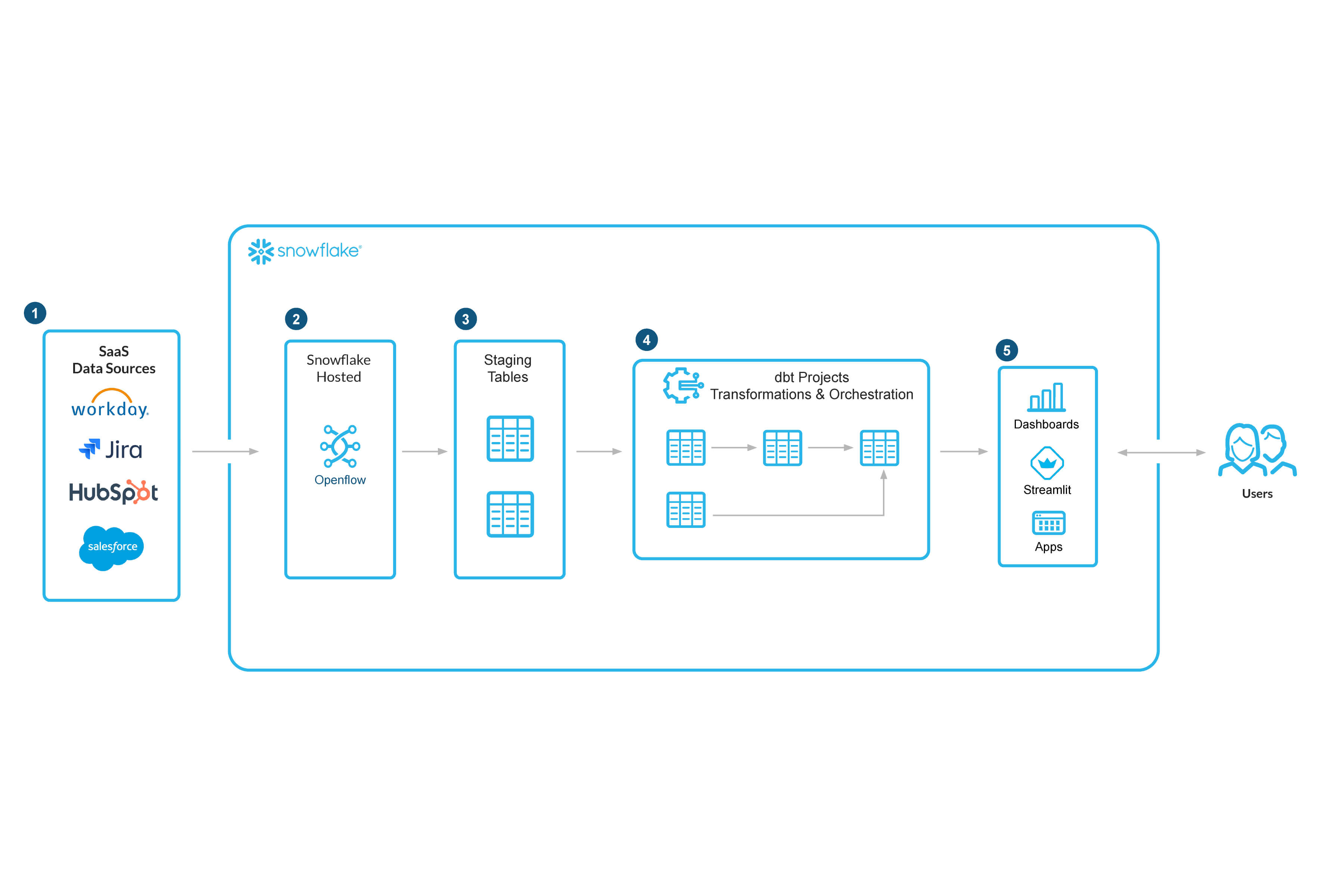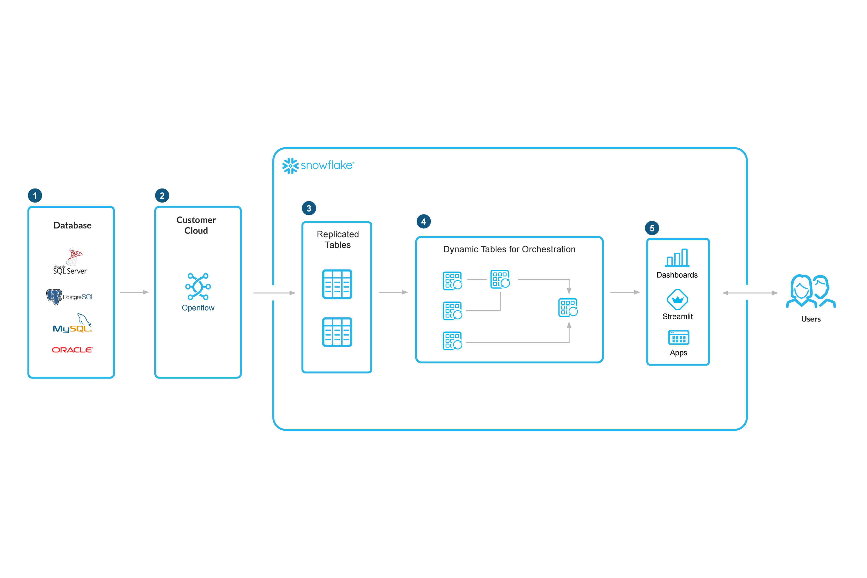 Get real-time insights from your most critical business applications without risking application performance or building complex pipelines. With Openflow, you can turn your OLTP data into a powerful analytical asset in minutes, not months, and empower your business with near real-time operational intelligence.