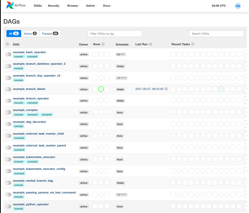 Con Airflow possiamo quindi pianificare il DAGtransform_and_analysis su base giornaliera. In questo esempio, tuttavia, attiveremo il DAG manualmente.