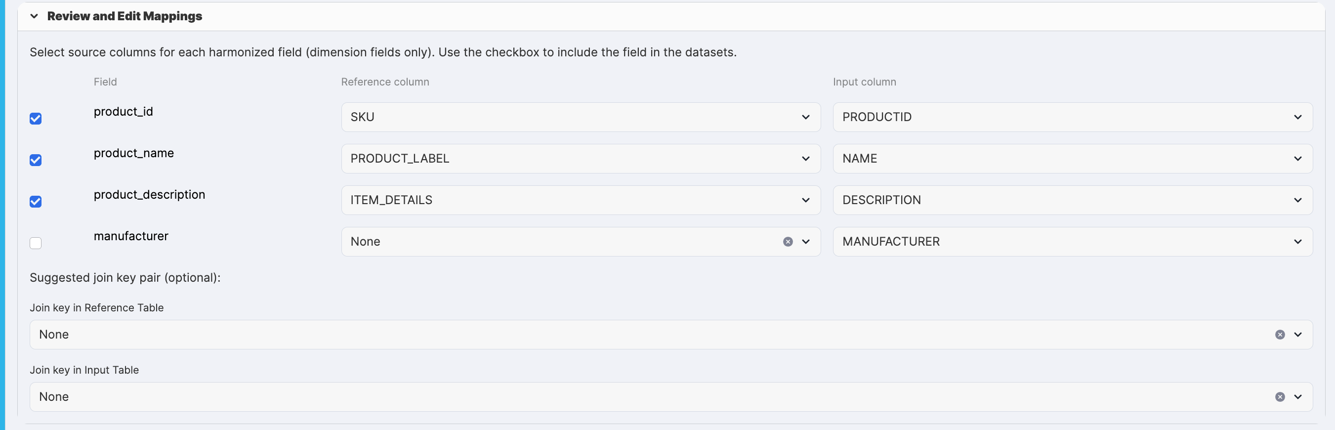 While both tables contain product information, the column names, data types, and structures differ. Before we can match products between these datasets, we need to harmonize them – creating a unified schema with consistent field mappings.