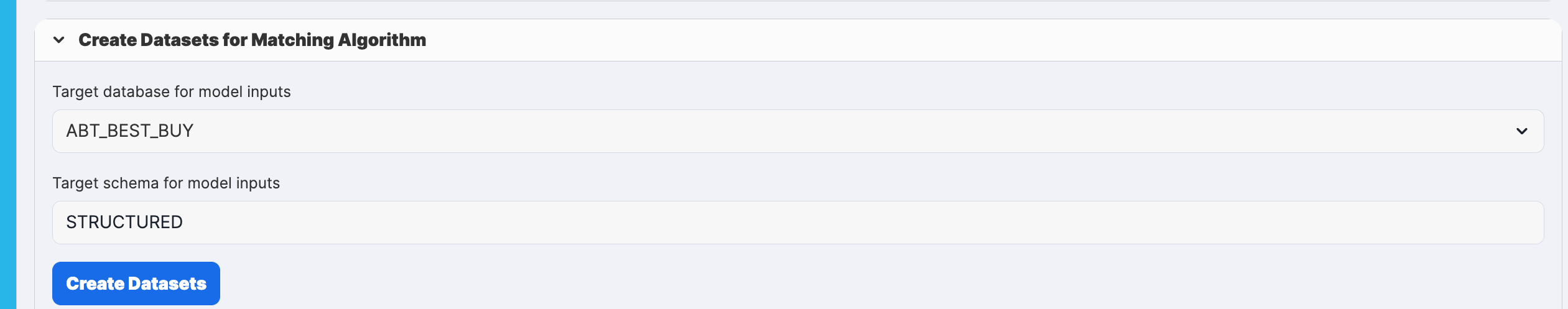 Note: The ABT/Best Buy CSV files themselves are from common datasets used for data harmonization evalutions and can be downloaded from the Universität Leipzig website for Benchmark datasets for data harmonization.