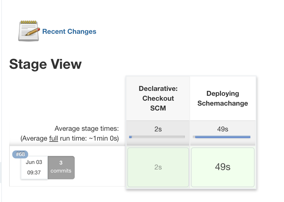 To view the log output from the execution you can either hover over the stage shown in the screenshot above and click on the Logs icon. Or for more details on the build you can open the specific build number and then click on the Console Output in the left navigation bar.