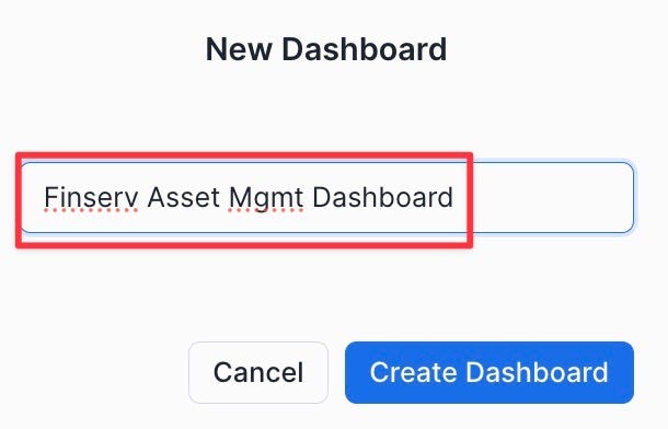 - Name it "Finserv Asset Mgmt Dashboard"