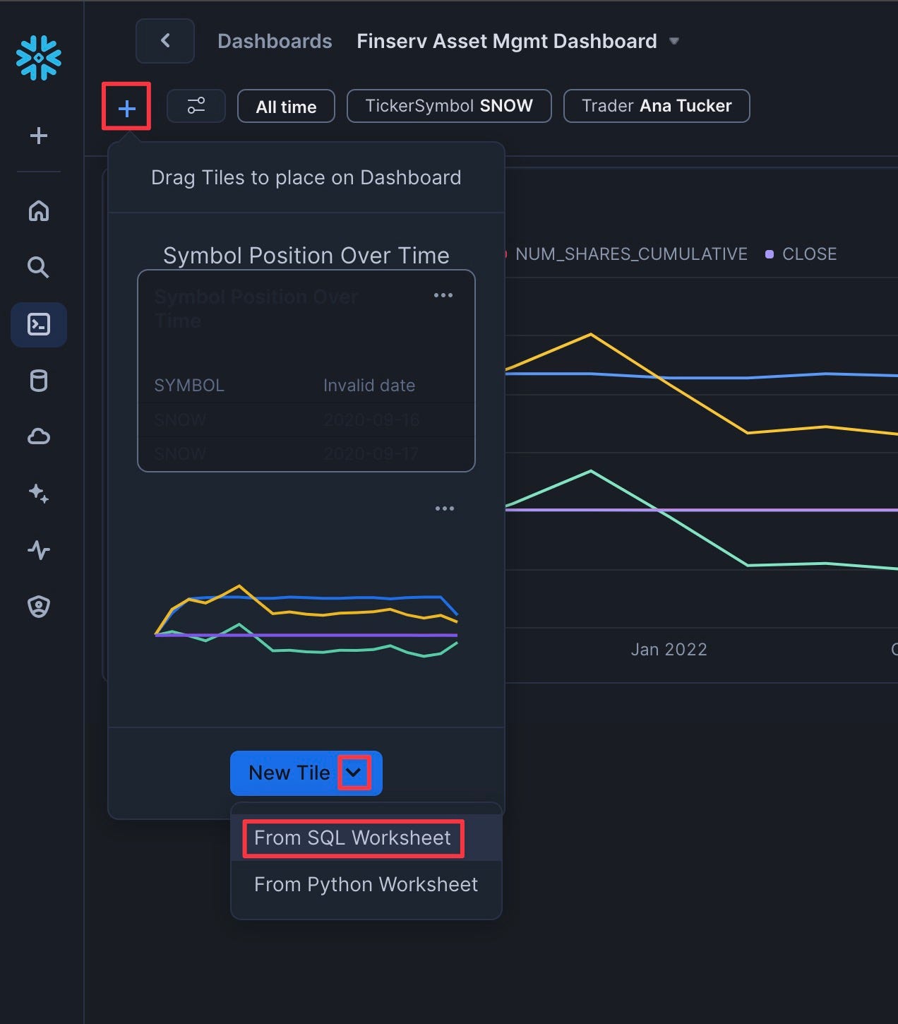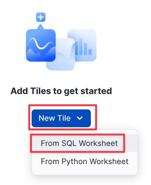- Click "Add Tile" | "From SQL Worksheet"