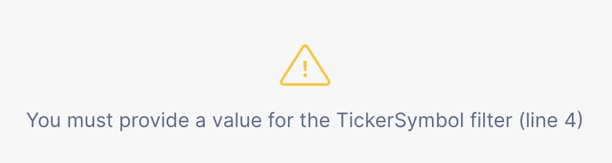 You’ll get an expected error. This is good as it now exposes the filters — that we created in the prior step — for us: