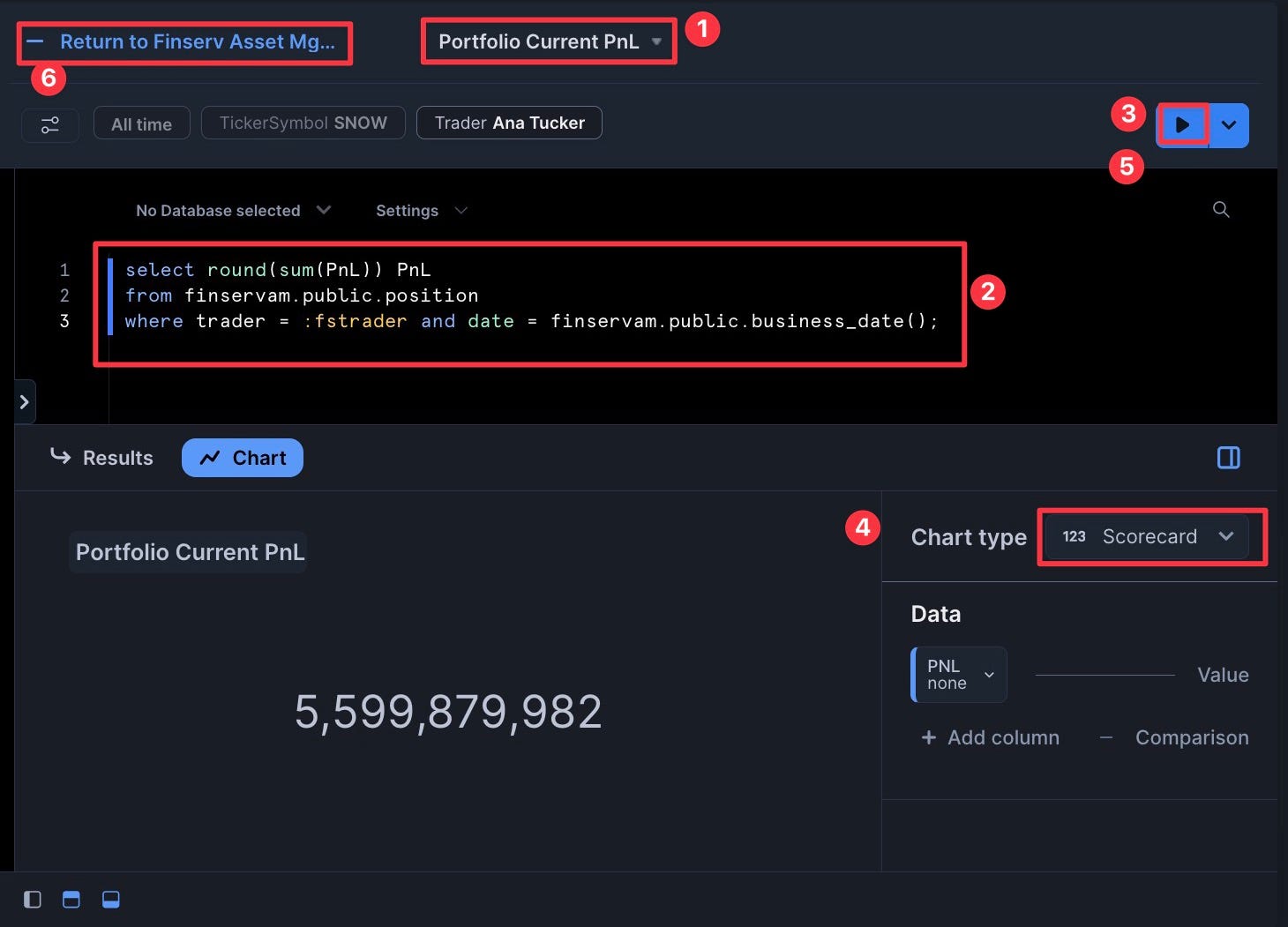 Congratulations! You've successfully built a Financial Services Asset Management demo in Snowflake that handles 3 billion synthetic trades while providing real-time cash and profit/loss calculations. You've learned how to scale compute resources up and down as needed, create interactive dashboards, and implement DevOps practices like zero-copy cloning and time travel.