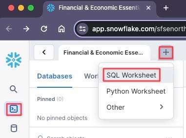 Now we'll create our first SQL worksheet to set up the environment: