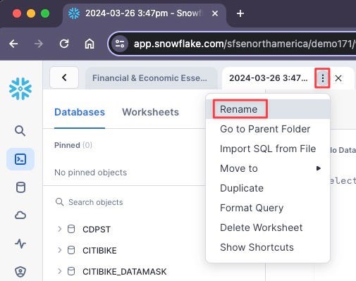 - Log into your Snowflake account