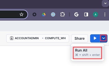 - Click the Inverted Chevron to Run All