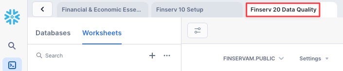 - Create a new SQL Worksheet named "Finserv 20 Data Quality"