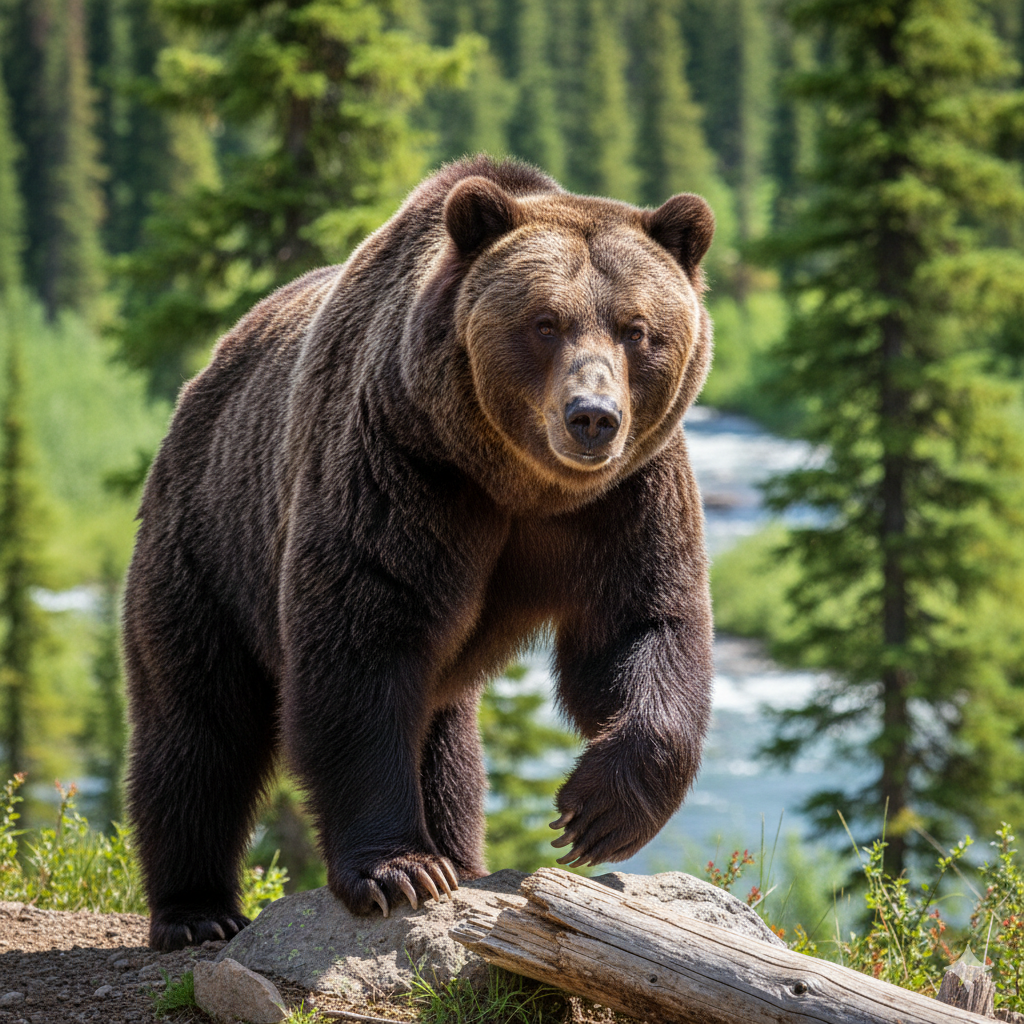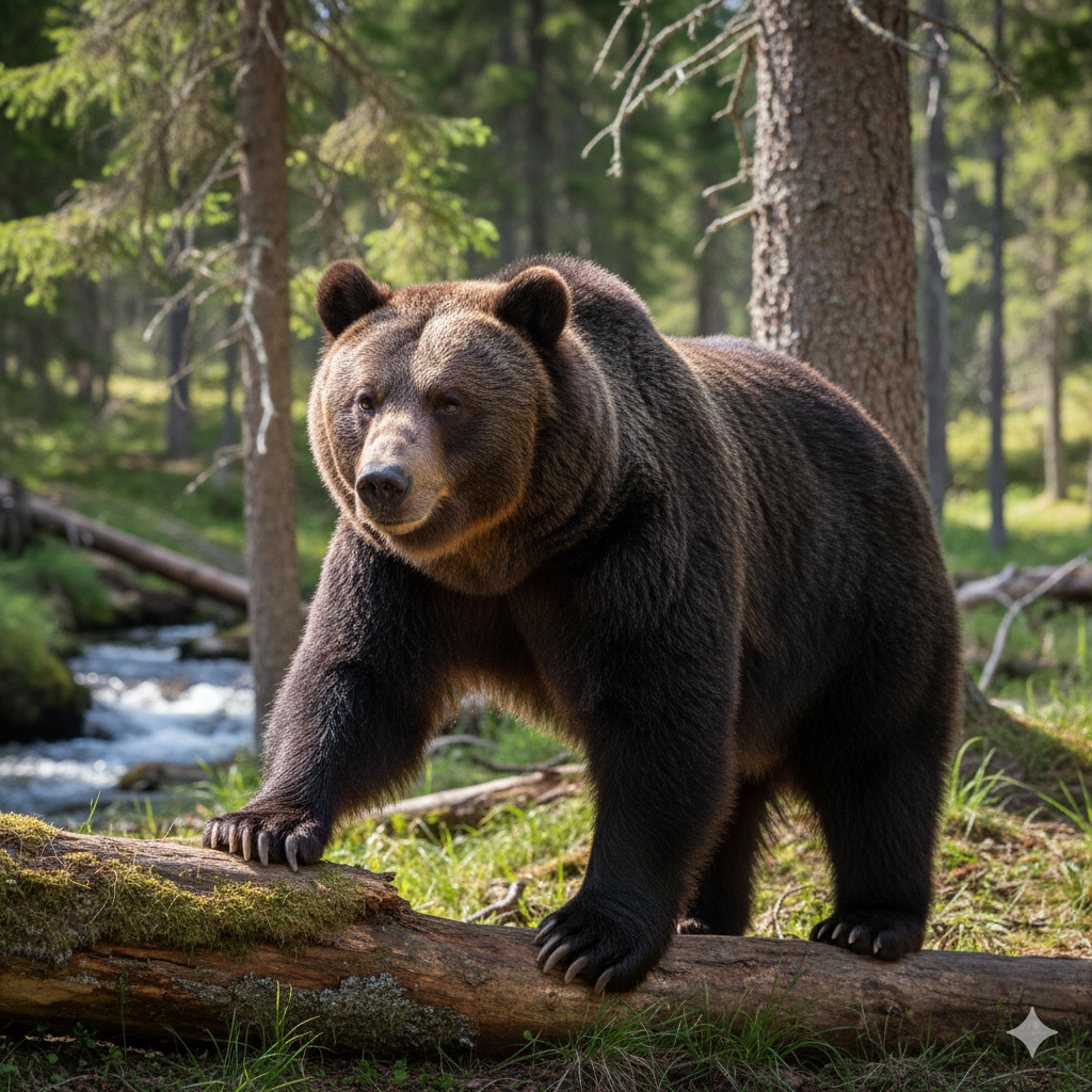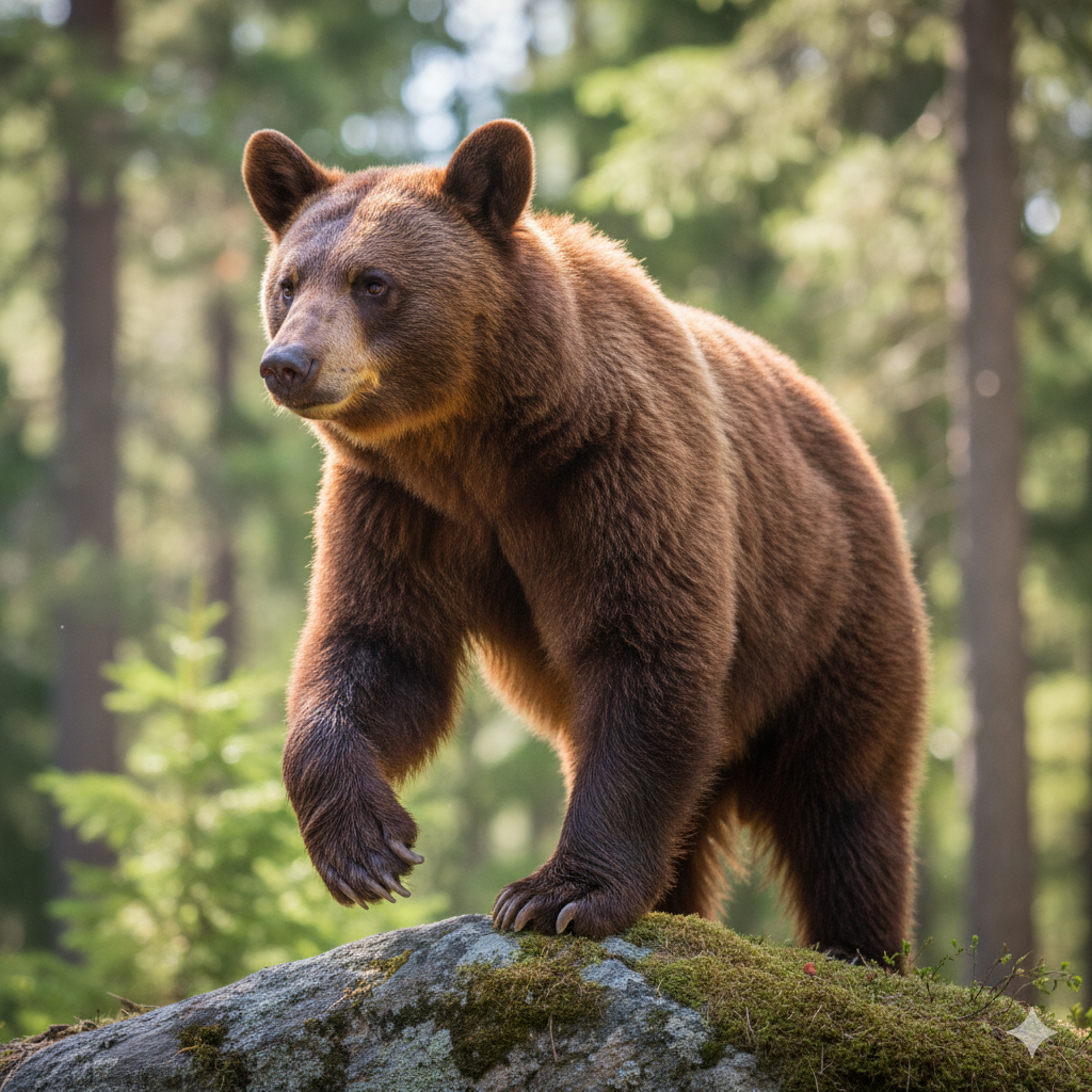 In contrast, the absence of a shoulder hump and a straight "Roman nose" facial profile are key features of the American Black Bear. Additionally, features related to paw structure, like the shorter, more curved claws (claw_length_cm) of an American Black Bear, are adapted for climbing, distinguishing them from the long, straighter claws of brown bears, which are built for digging.