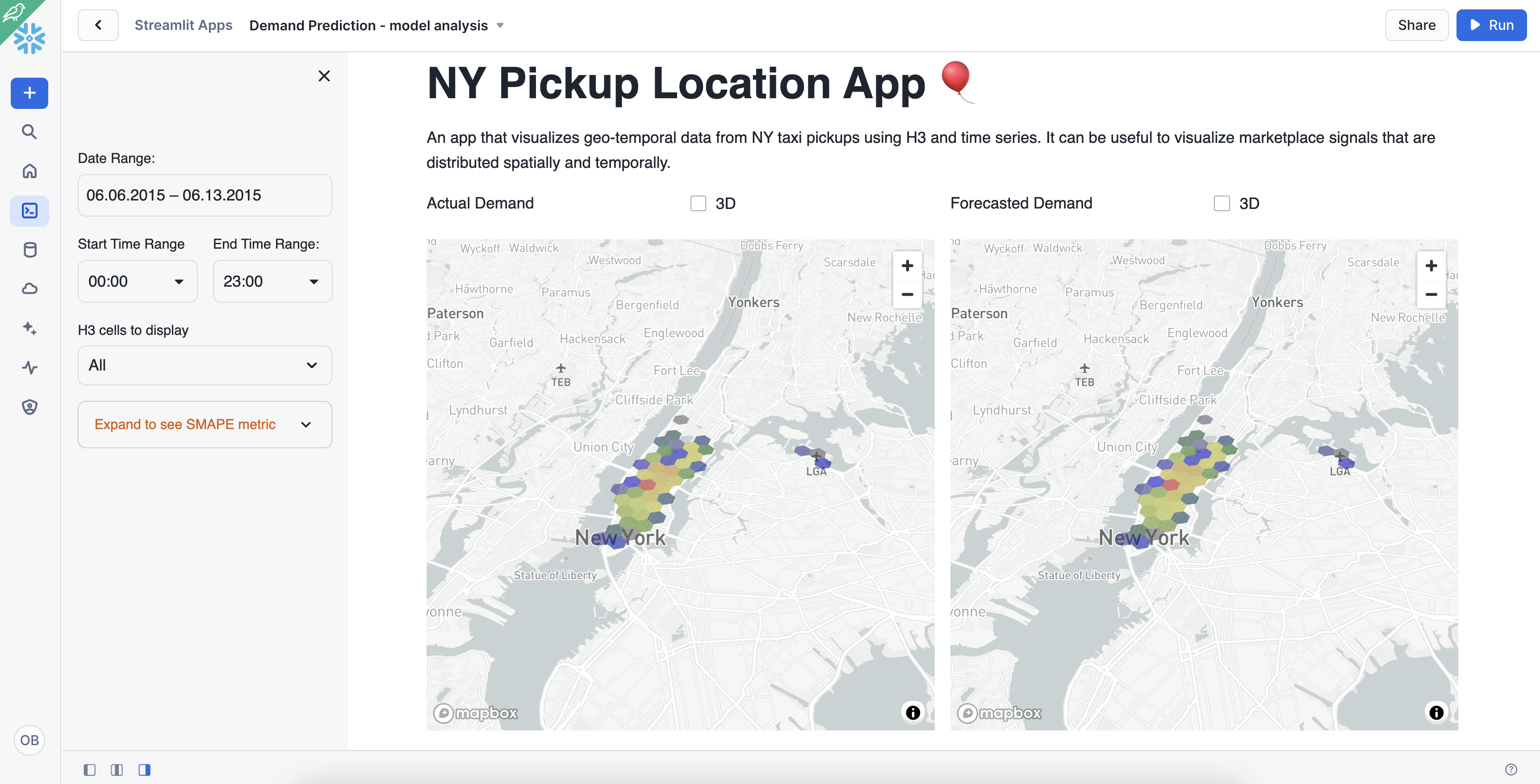 In this quickstart, you will use H3, Time Series, Cortex ML and Streamlit for ML use cases. The quickstart is broken up into separate labs:
