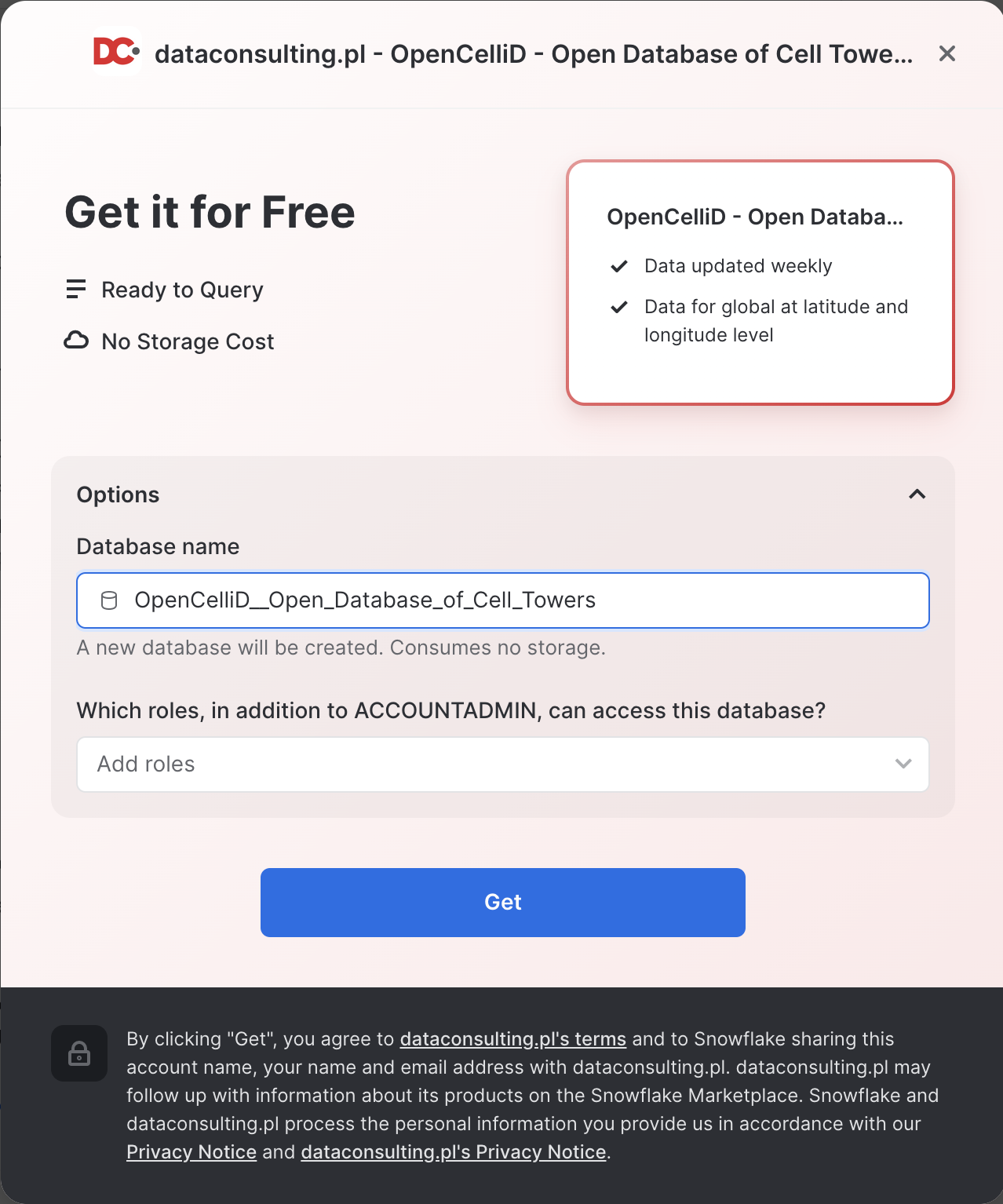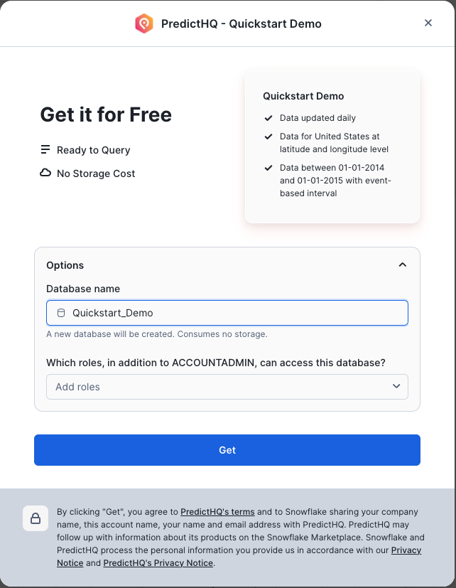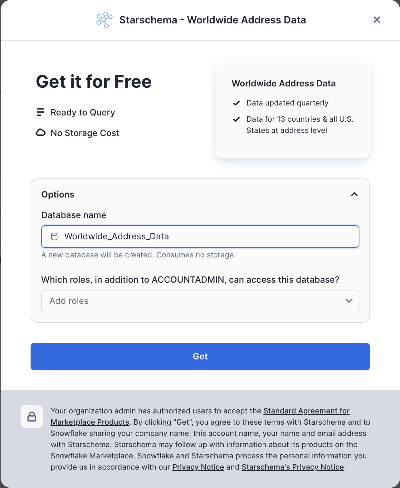 Congratulations! You have just created a shared database from a listing on the Snowflake Marketplace.