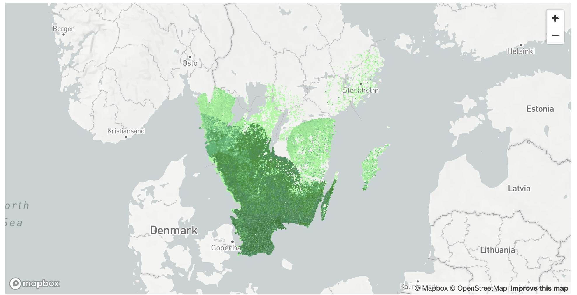 Now you can load data from Bok_andel.tif. Run the query below to reduce the size of the initial file to 500 million points and ignore points where the band value equals zero.