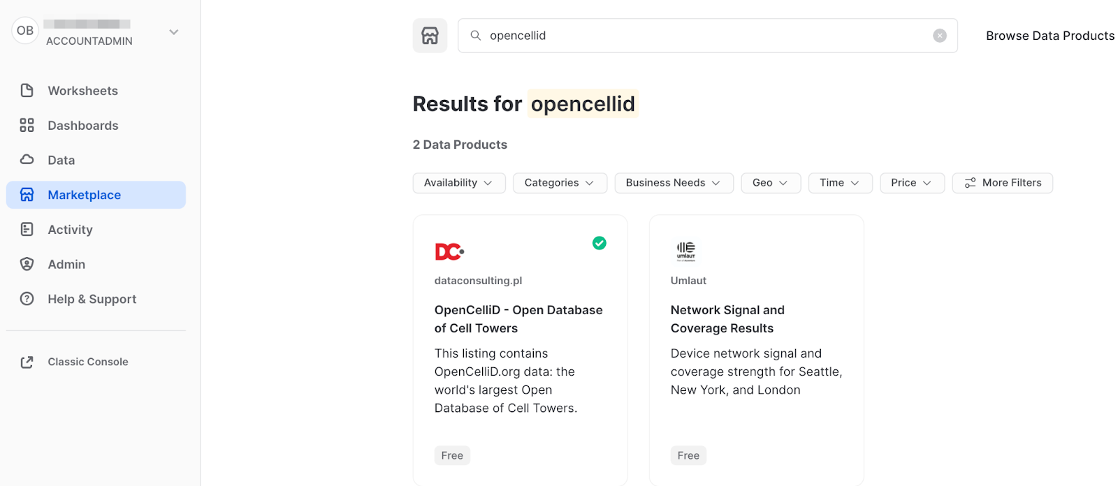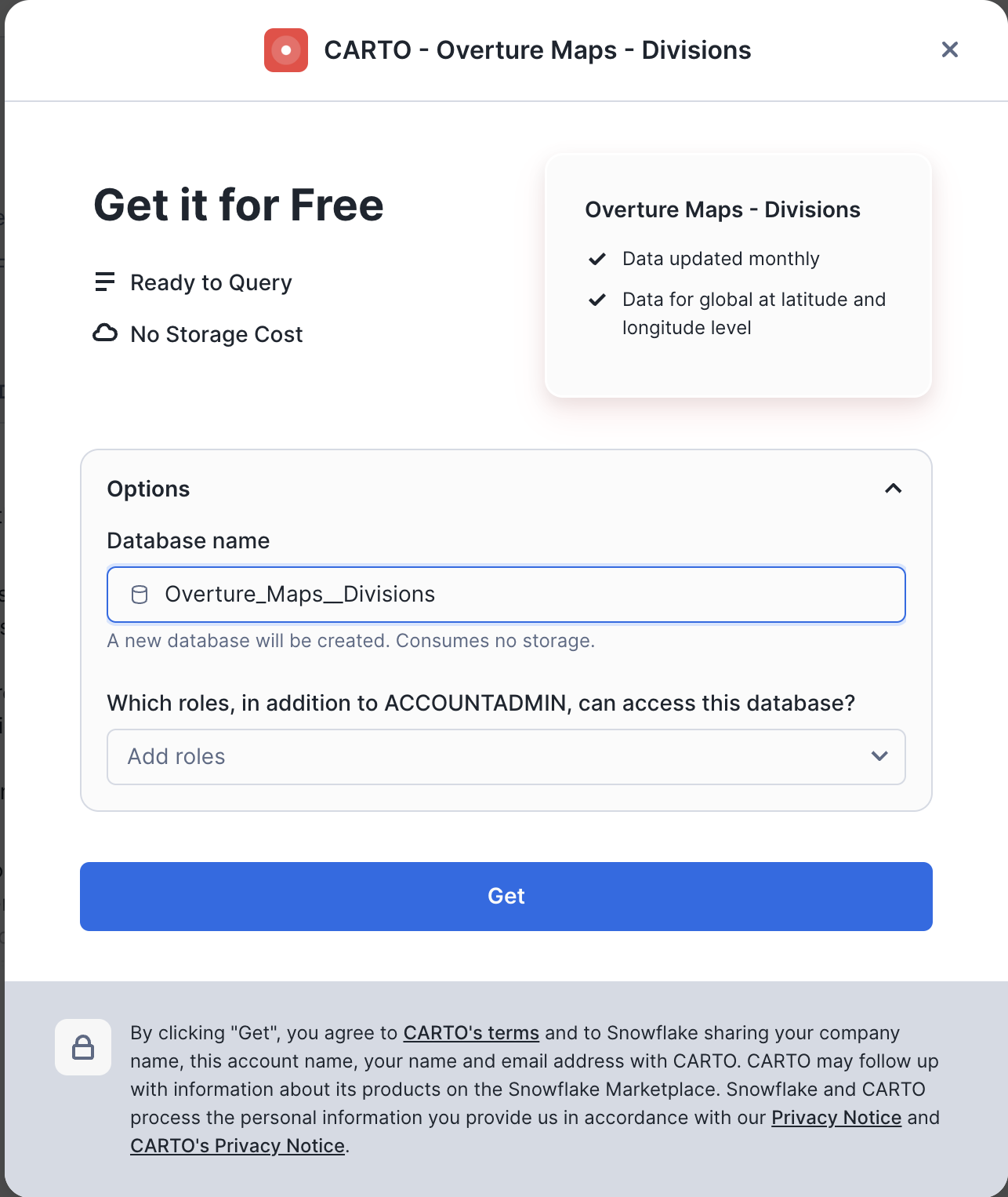 For this lab oyu will use Overture Maps - Places dataset from Marketplace. Now you can acquire sample geospatial data from the Snowflake Marketplace.