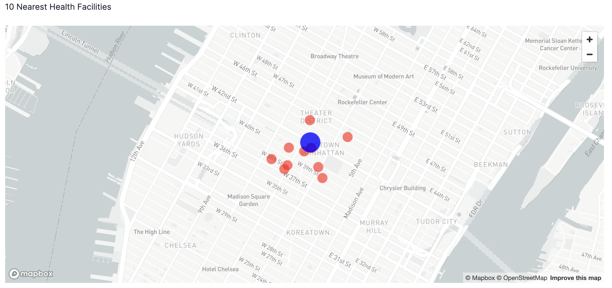 Geospatial query capabilities in Snowflake are built upon a combination of data types and specialized query functions that can be used to parse, construct, and perform calculations on geospatial objects. Additionally, geospatial data can be visualized in Snowflake using Streamlit. This guide provides an entry-level introduction to geospatial analytics and visualization in Snowflake. In this lab, you will explore a sample use case of identifying the closest healthcare facilities near a geographic point, and you will learn: