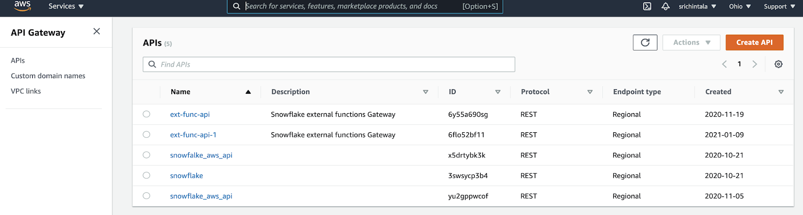 Now let's begin integrating that API with Snowflake! We'll be moving over to the Snowflake console, but don't close out of your AWS console just yet; you'll need to come back to it later.