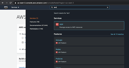 From the AWS main console, search for and select IAM.