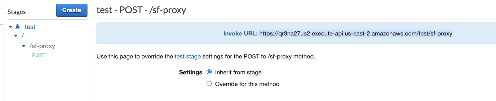 Click on "POST" and record the "Invoke URL" for the POST request as the "Resource Invocation URL" field in the template.