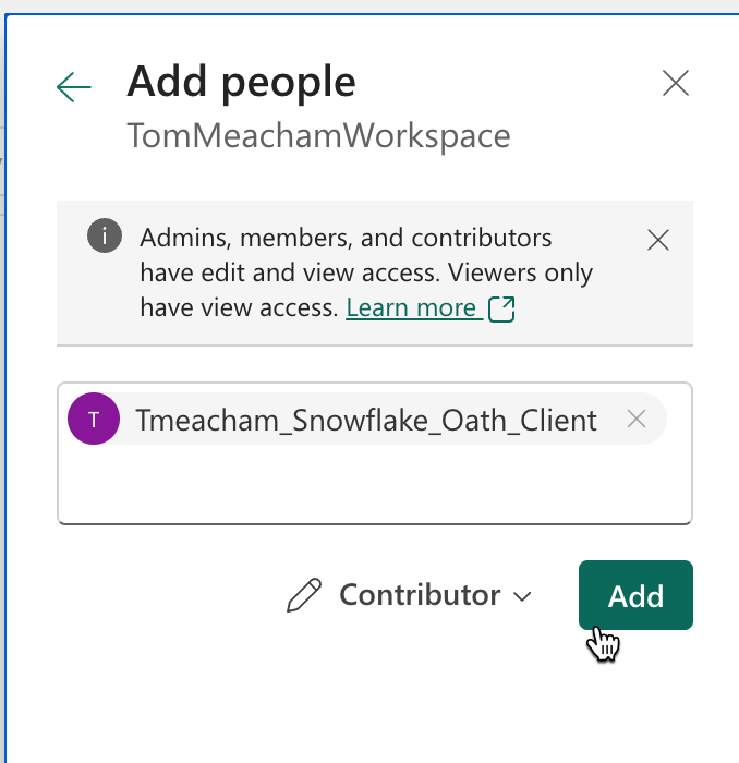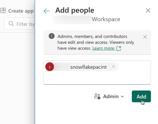- Take the value of the AZURE_MULTI_TENANT_APP_NAME you copied from the last query you ran in Snowflake, and add it to the workspace.