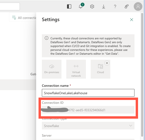 In this step you create a Snowflake connection in Microsoft Fabric, which allows you to connect your standard database in Snowflake to Microsoft Fabric.