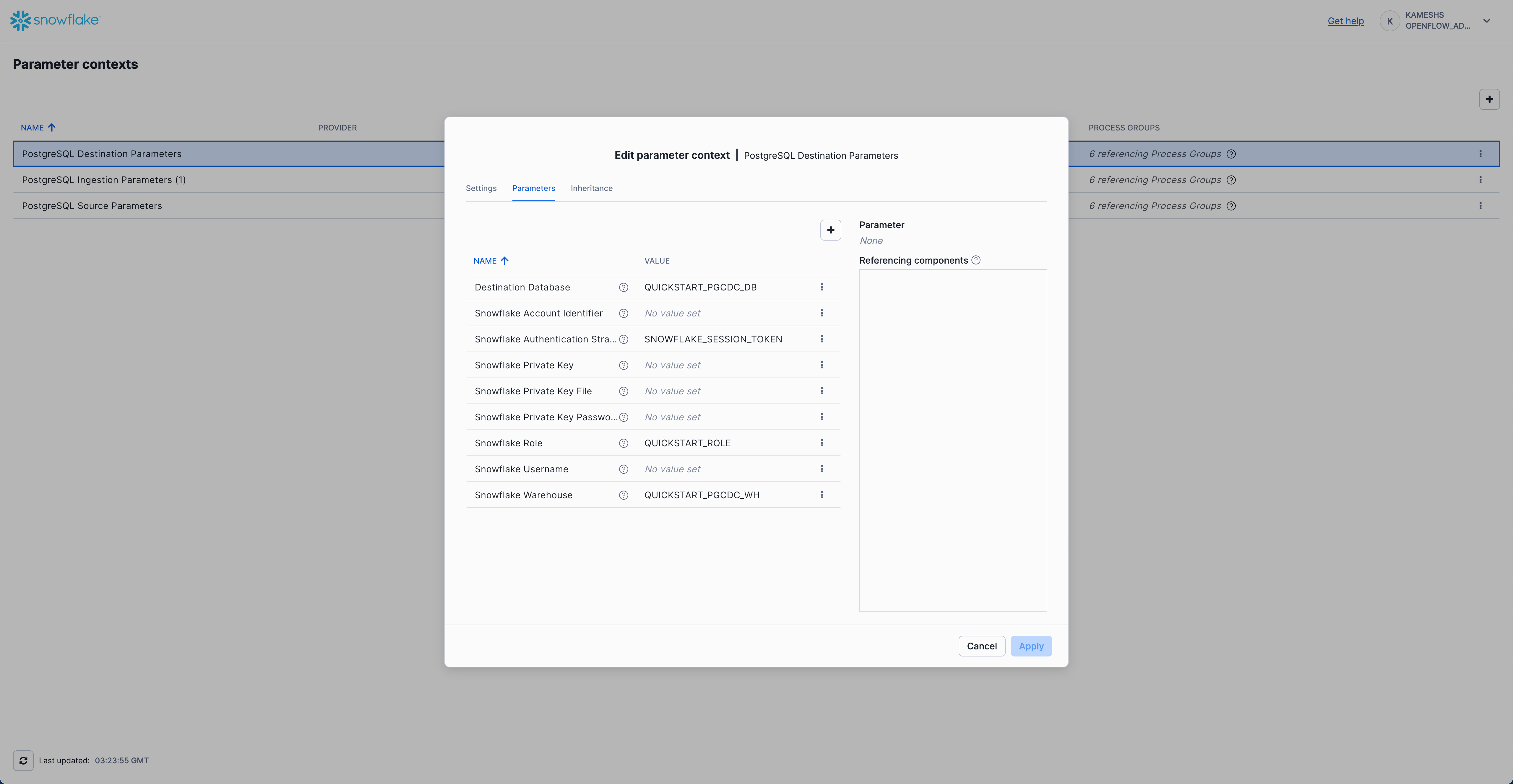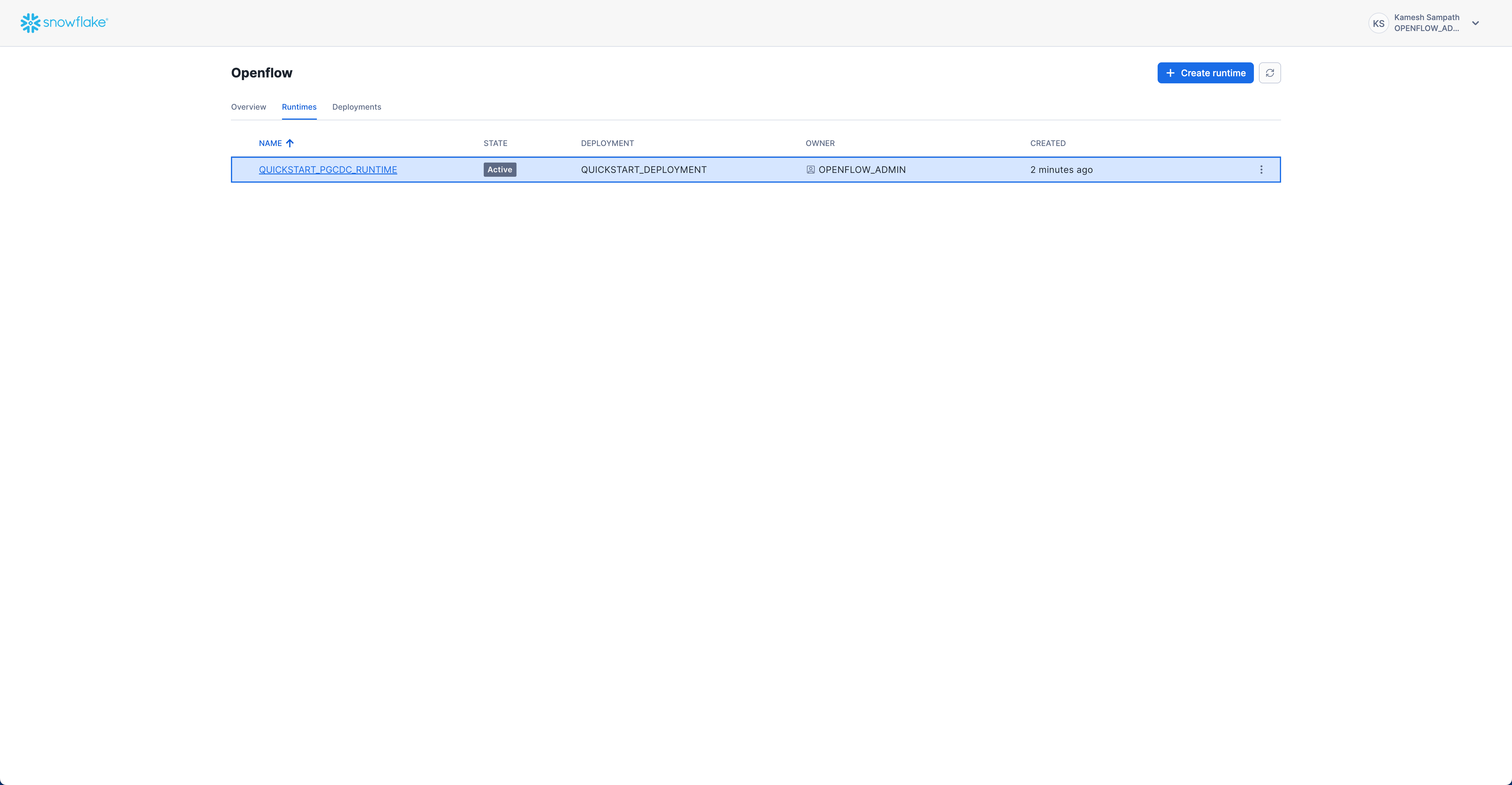 Keep the Runtime: The shared runtime can be reused for future Openflow projects, including other CDC connectors, API integrations, or file ingestion pipelines. Stopping services preserves all configuration while eliminating compute costs.