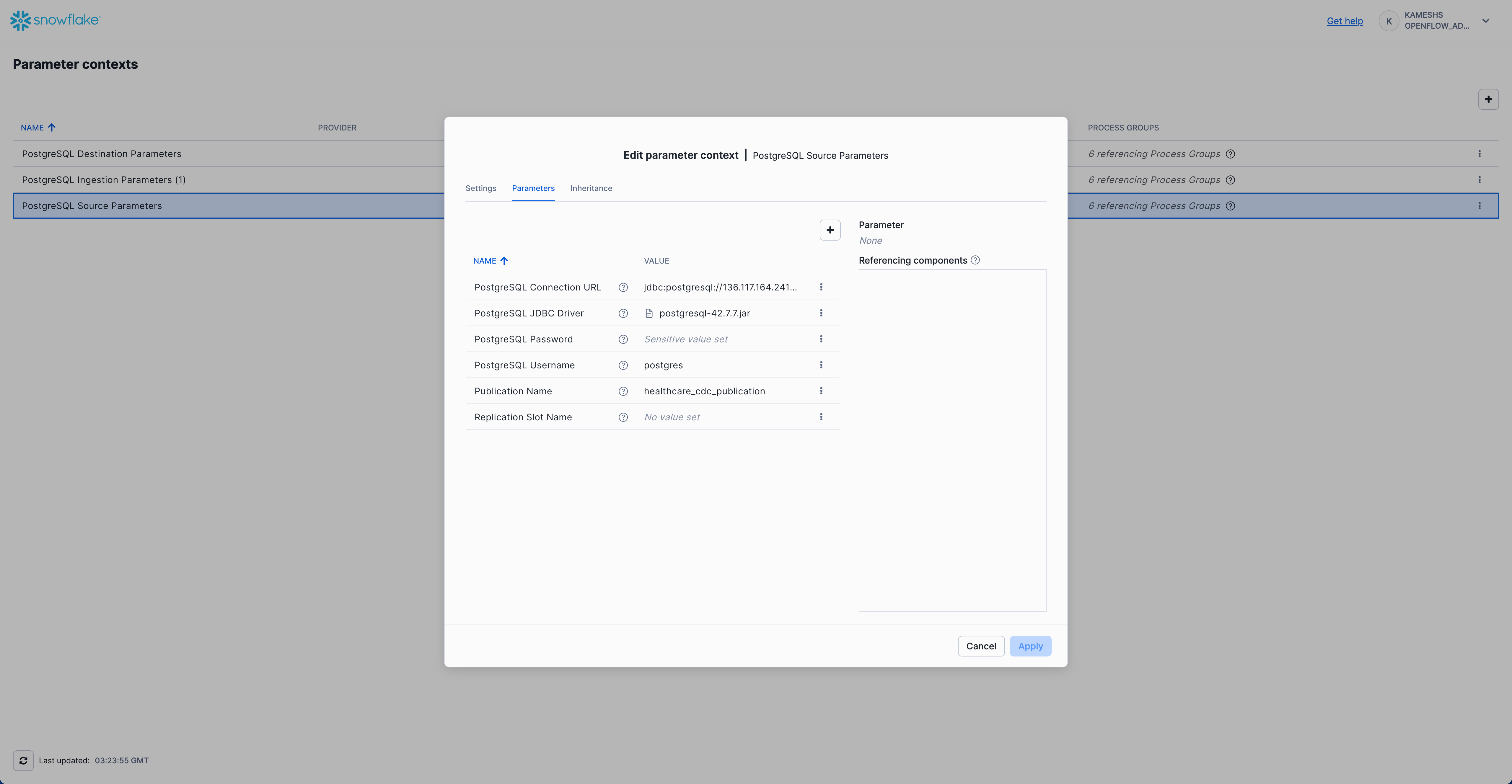 Replication Slot Naming: The replication slot name is automatically generated by Openflow following the pattern