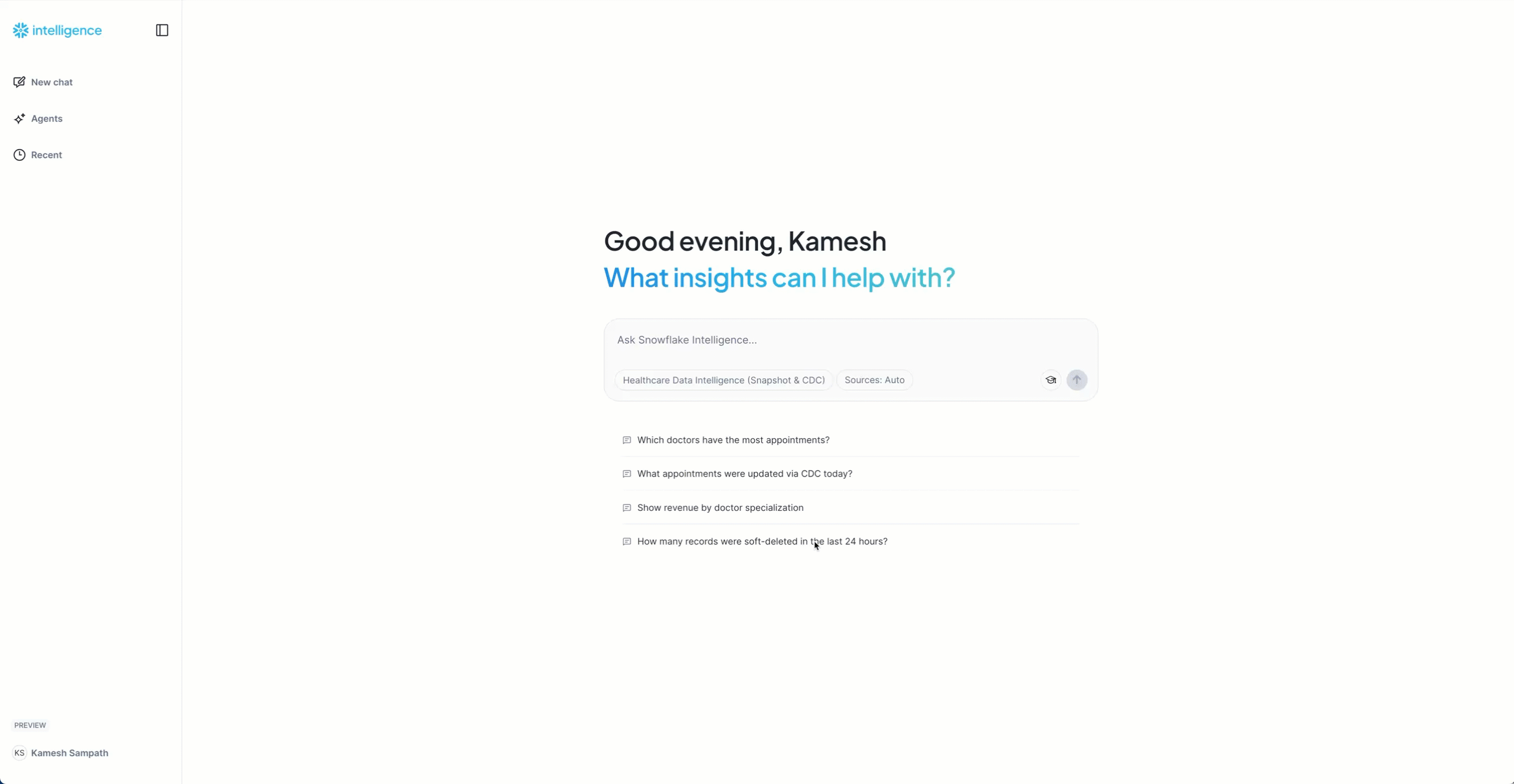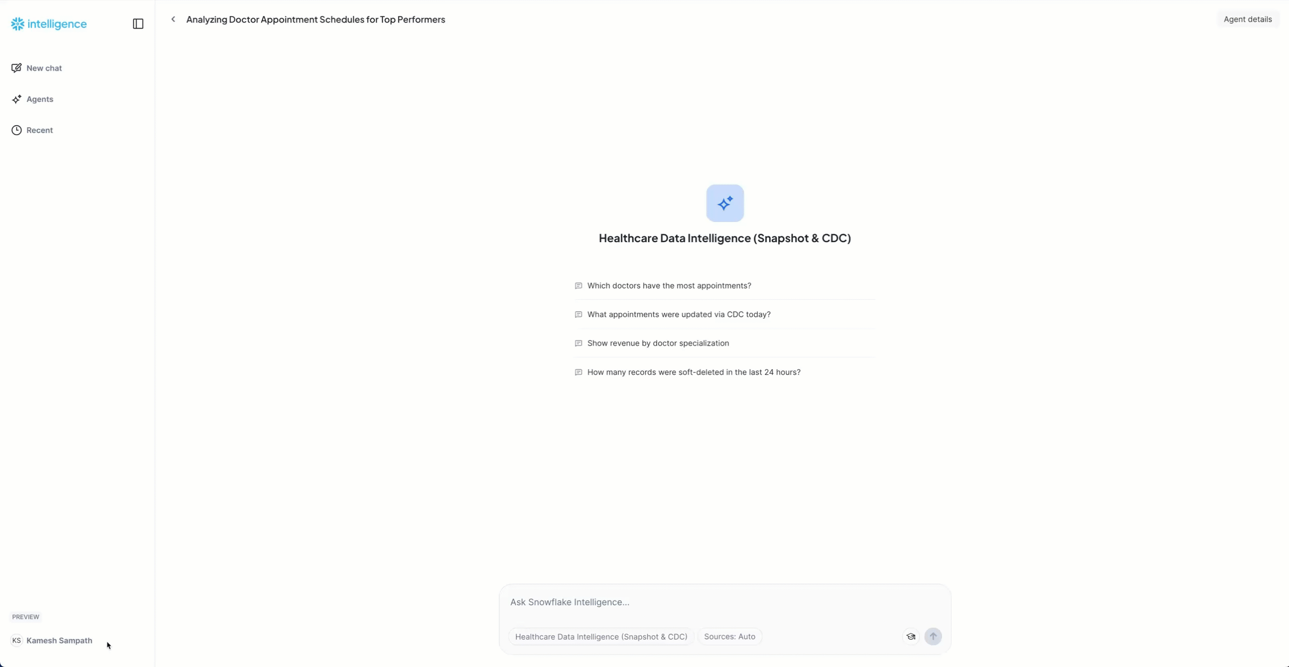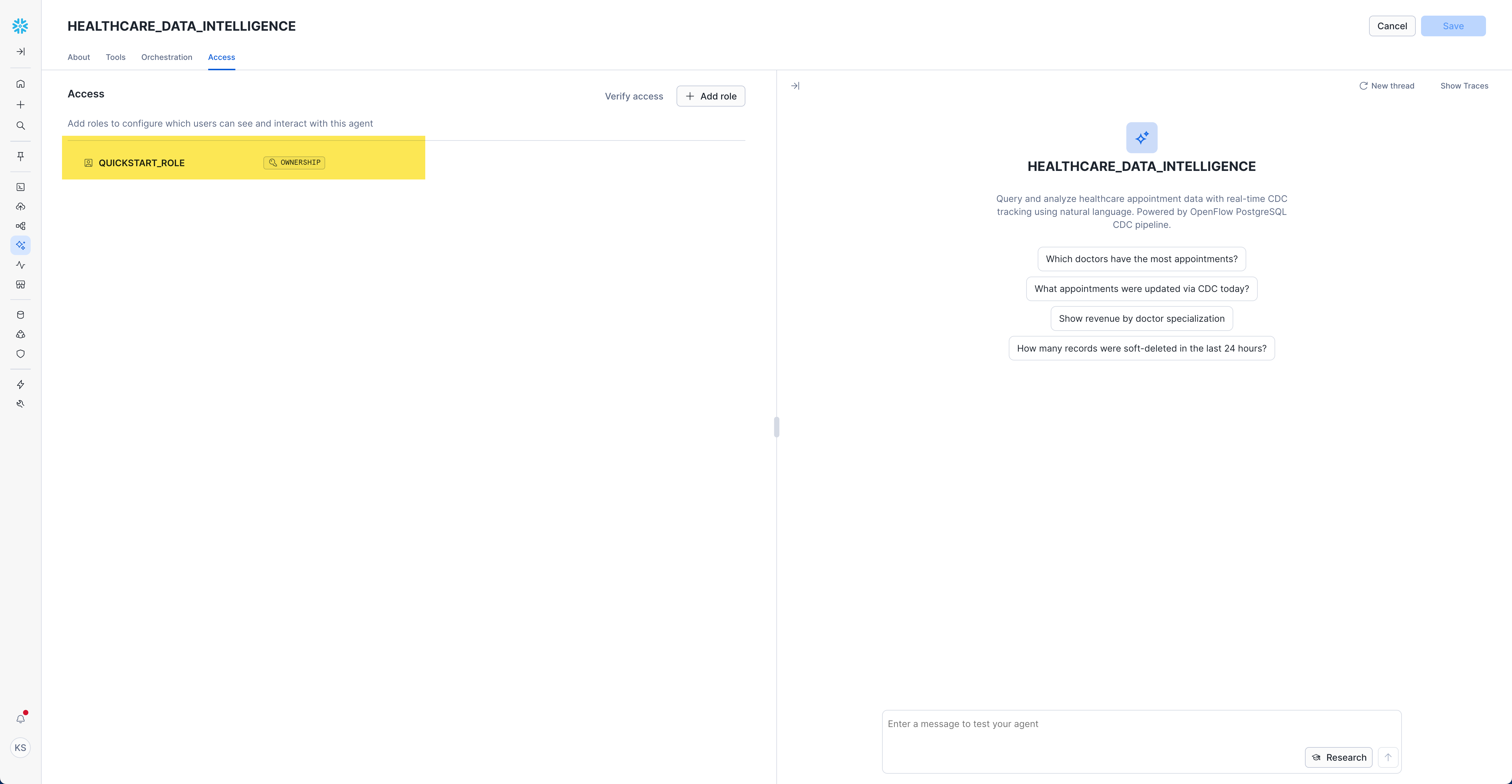 Pro Tip: Snowflake Intelligence understands the CDC metadata columns and can differentiate between snapshot data and real-time changes. Try asking comparative questions like "Show me only the appointments that changed today" to see CDC-specific insights!
