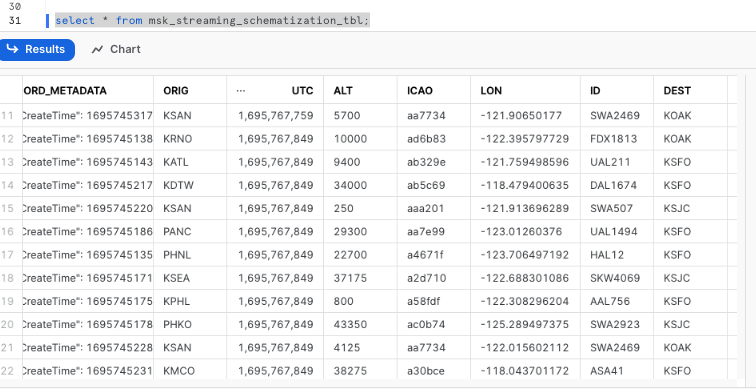select * from MSK_STREAMING_DB.MSK_STREAMING_SCHEMA.MSK_STREAMING_ICEBERG_TBL;