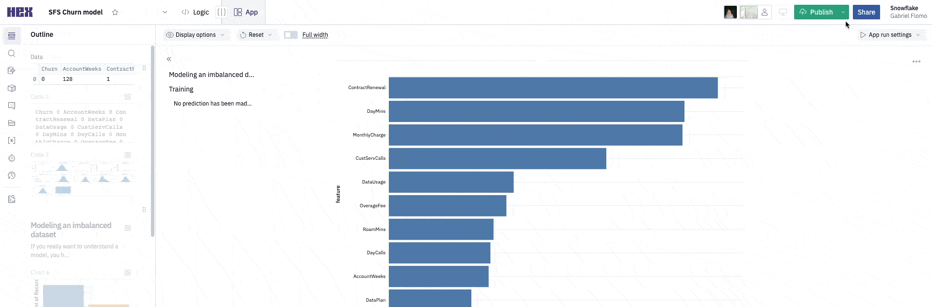 Churn modeling using Snowflake and Hex
