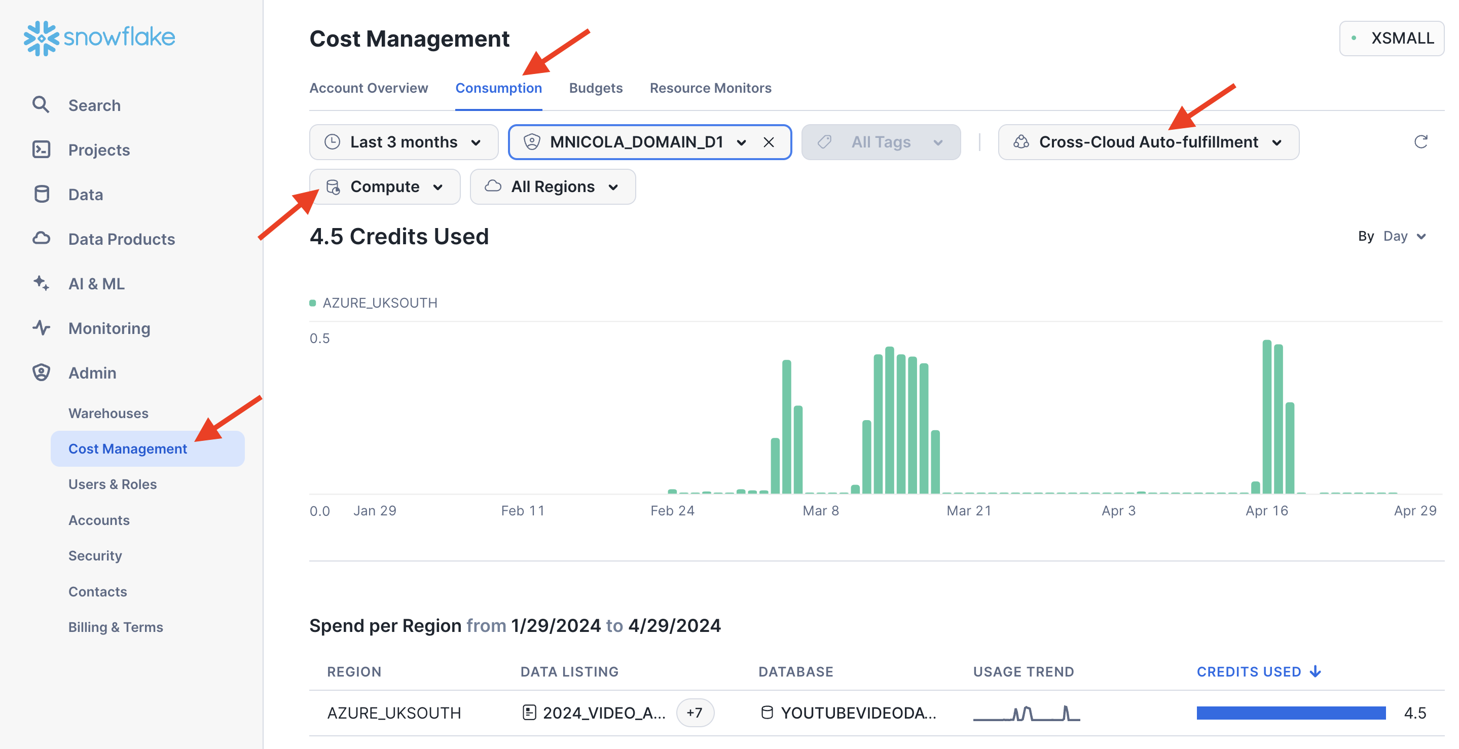 Return to Snowsight and ensure your role is ACCOUNTADMIN (check and set if necessary at the bottom left corner)